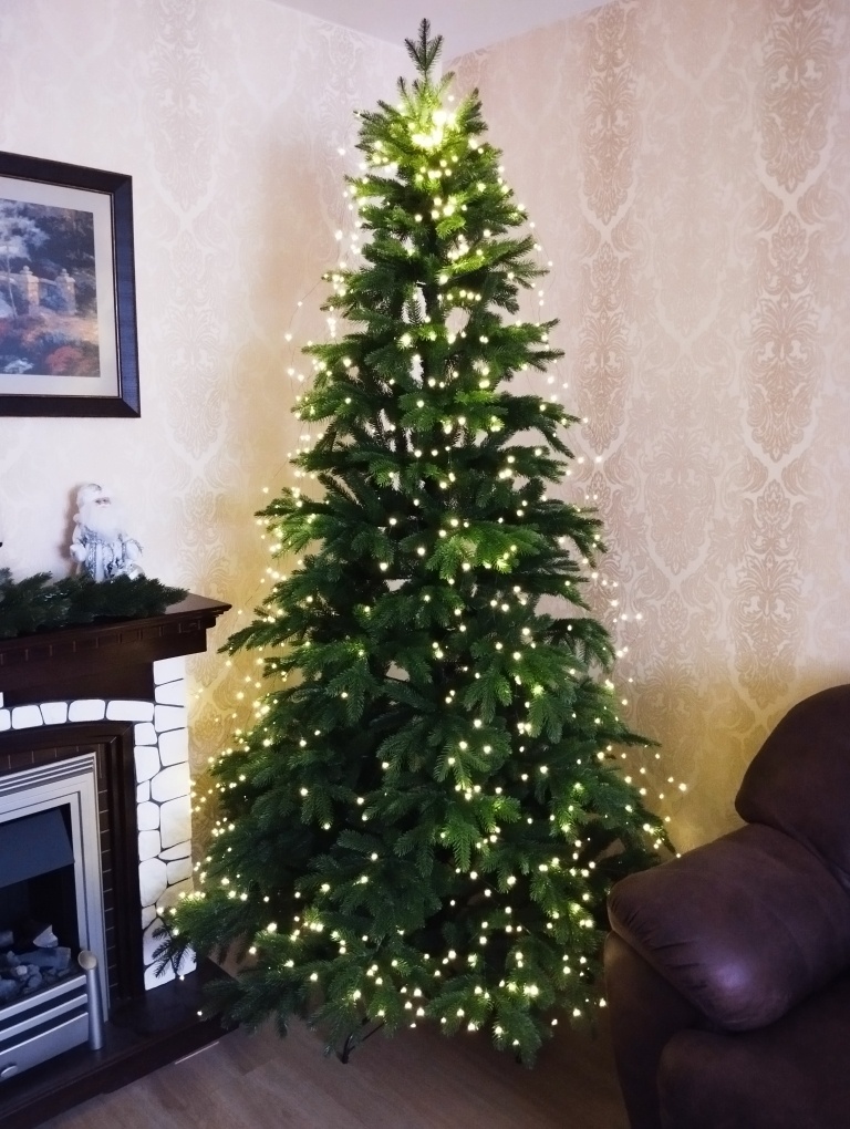 Старую елку мы покупали в 2000 году, когда купили свою первую квартиру. Она служила нам много лет, но с появлением литых веточек, мне захотелось такую елку, полностью литую. Я выбрала большую, под потолок, на шарнирах, чтобы не отгибать ветки. В этом году мы второй раз ее собирали и хранилась она весь год под кроватью. Все прошло хорошо. Ничего не сломалось и не осыпалось. Запаха нет. Высота елки 2.4 метра, потолок 2.7. Арт. 736699436 на Озоне. Вставляем 4 части друг в друга, ветки сами встают на нужное место. Остается их распушить и разложить красиво. Это занимает некоторое время. Но красота того стоит. Я заказала гирлянду конский хвост на Озоне арт. 2867794388. Она крепится сверху у макушки и спадает вниз нитями с диодами. Вешать легко, только нужно распределить равномерно все нити. Я брала длину 3 метра, чтобы разложить внизу, где больше ветвей. Каждую нить я закрепляла по высоте в нескольких местах, просто обматывая ветку. Смотрится красиво. Удобно, что эта гирлянда запоминает п