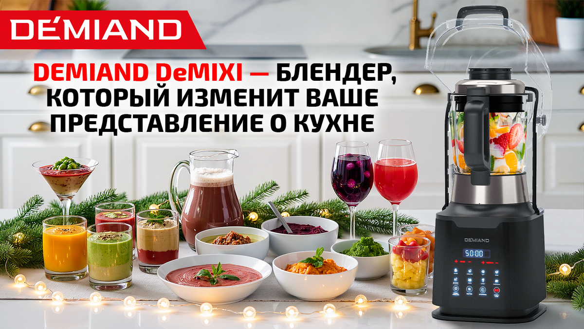 Ссылка на Ozon 🛍 Мы создали не просто блендер. DeMixi — это умный, функциональный и стильный кулинарный помощник, который сразу заменит несколько приборов и станет сердцем Вашей кухни. Почему? Потому что он делает всё — от идеальных смузи до горячих супов и ореховых паст. И делает это быстро, тихо и безопасно. 1️⃣ Интеллектуальные технологии — готовит за Вас DeMixi создан, чтобы Вы тратили меньше времени и сил, а получали ресторанный результат. Умные программы автоматически подбирают время и мощность под объём ингредиентов.