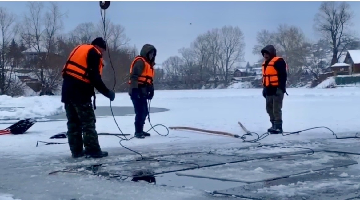 В Уфе на озере Долгое режут лёд для новогодних городков