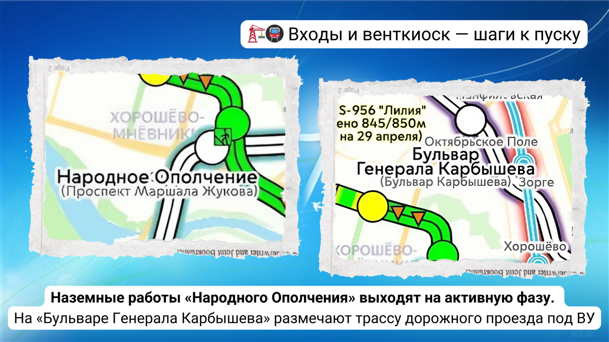 официальные отчеты. Давайте вместе разберемся, что же на самом деле происходит с нашей Москвой. Поехали? В первой части представим обзор стройплощадки 🚇 станции «Народное Ополчение» (проектн. «Карамышевская») 💸Рублëво-Архангельской линии. Возведены почти все венткиоски станции, ведётся их отделка. Продолжается отделка входных павильонов южного (пересадочного) вестибюля. Остеклён один из павильонов северного вестибюля. 📷 1.6: Панорама-сравнение с 15 сентября. Во-второй части, окинем взором дорожные работы на 🚇«Бульвар Генерала Карбышева» 💸Рублёво-Архангельской лин