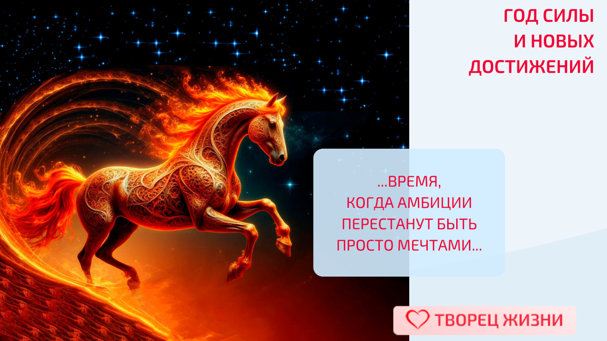 Дорогие, предстоящий год - год Красной Огненной Лошади. Это время силы, движения и настоящих чудес, которые рождаются из смелых решений и упорства 👏 Лошадь - прекрасное, грациозное и неутомимое животное, которое несет в себе дух свободы, жажду скорости и непоколебимую веру в правильность выбранного пути. Именно такая энергия будет витать в воздухе весь год, подталкивая делать шаги вперед, даже когда вдруг покажется, что сил уже нет. В этом году девизом могут стать слова: "Пора расправить плечи и пойти туда, где страшно, но по‑настоящему хочется быть". Это время, когда амбиции перестанут быть просто мечтами - они начнут сбываться. Если вы давно вынашивали идею, планировали перемены или мечтали о новом уровне в карьере, творчестве, отношениях - 2026‑й даст вам мощный импульс. 🐴 Лошадь не любит топтаться на месте, она зовет за собой, и если вы откликнетесь, то удивитесь, как быстро начнут открываться двери, о которых вы даже не догадывались. Эта энергия требует ответного движения. Когда