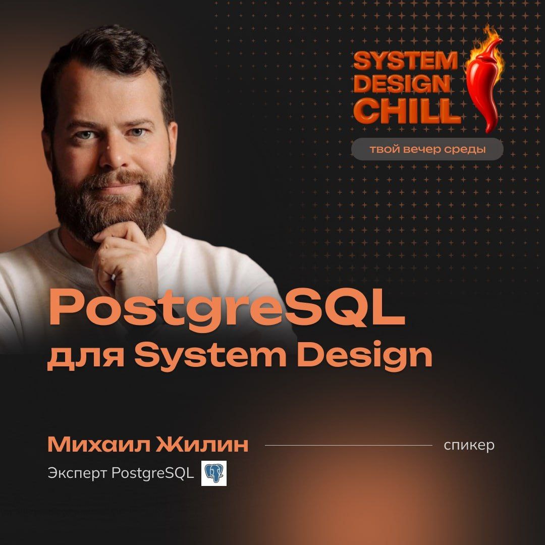 PostgreSQL в System Design. База базы. • Раскрывает тему Михаил Жилин — эксперт PostgreSQL. 🌶 System Design Chill сегодня в 19:00. Ссылка будет ближе к встрече.❗️
