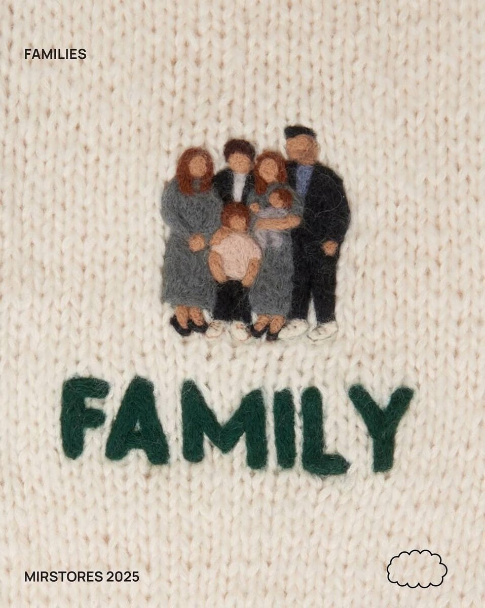 Классный кейс от российского бренда MIRSTORES — у них появилась опция персонализации 🤍 Вы присылаете фотографию — семьи, питомца, или любой визуальный код, который важен именно вам — и его вручную воссоздают на свитере в технике валяния. Красивая демонстрация того, как локальные бренды работают с индивидуальностью не как с трендом, а как с инструментом смысла.