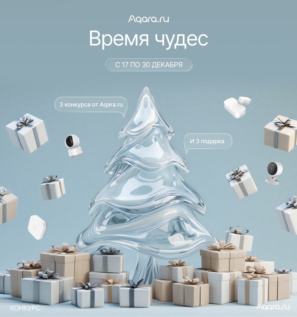 ! В этом году под елку мы положили 3 подарочные коробки. Уже с завтрашнего дня мы начнем их открывать и разыгрывать призы, а сегодня предлагаем вам угадать, что же находится в каждом подарке. Конечно, не оставим вас без подсказок: 🤩 Загадка №1 Он не спит, когда все дома спят, Не дышит, но замечает взгляд. Молчит, но знает каждый шаг, И память у него — не как у нас. 🤩 Загадка №2 Его нельзя потрогать сразу, Но с ним послушны вещи в доме. Он собирает хаос в систему И делает привычки проще. 🤩 Загадка №3 Он не греет — но без него холодно, Не думает — но принимает решения. Зиму встречает спокойнее всех И знает, когда пора теплее. ➡ Свои ответы пишите в комментарии — итоги подведем перед последним, третьим, конкурсом, чтобы сохранить для всех интригу. Тот, кто угадает все три устройства, получит в подарок мерч Aqara! Поздравляем с наступающим Новым годом и пусть удача всегда будет с вами!