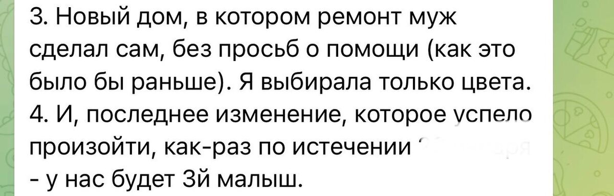 ? Подвожу итоги этого года. Понимаю,что у меня много чего не получилось.. Маркетологи сейчас покрутят у виска, мол что она делает?.. ДА, я психолог, я помогаю другим, но и у меня есть то, что НЕ получается .. Я сталкиваюсь с теми же проблемами, что и другие и как-то с ними справляюсь.. За год провела всего 500часов терапии (для меня это немного). Больше взять не могла, потому что много времени и сил ушло на восстановление после лечения. По этой же причине пришлось отказаться от многих проектов и в принципе соц активности. Поэтому я так много пишу про то, что вкладываться в себя нужно, когда Тело здорово, потом будет сильно дороже.. Анализируя рабочие протоколы, которые дают хорошие результаты, обнаружила 2 «побочки» у терапии.. 👉Смена жительства . Из найма в своё. Из квартиры в дом. Переезд в другую страну, город, район. Лайт вариант - ремонт .. В общем все виды смены пространства. и… 👉Детки👼 И если в первом случае , все понятно. Меняется человек и меняется среда вокруг нег