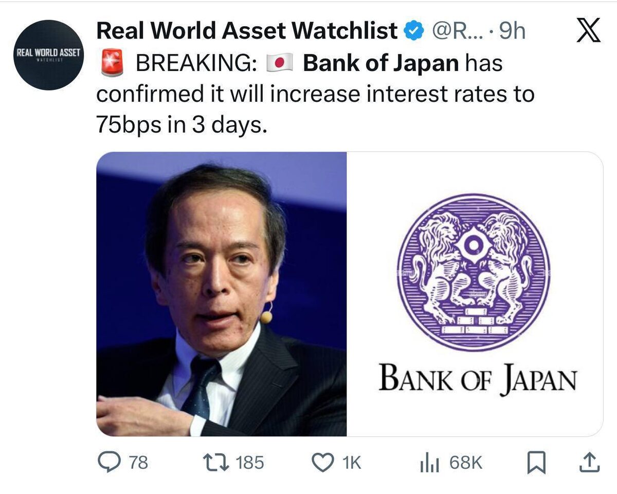 Последнее повышение Банком Японии процентной ставки до 0,5% 31 июля 2024 года привело к укреплению иены и значительному оттоку от рисковых активов в начале августа, в результате чего биткойн снизился примерно с 65 000 до 50 000 долларов😬 Заседание 19.12. Пора в шортики на этих новостях?🩳