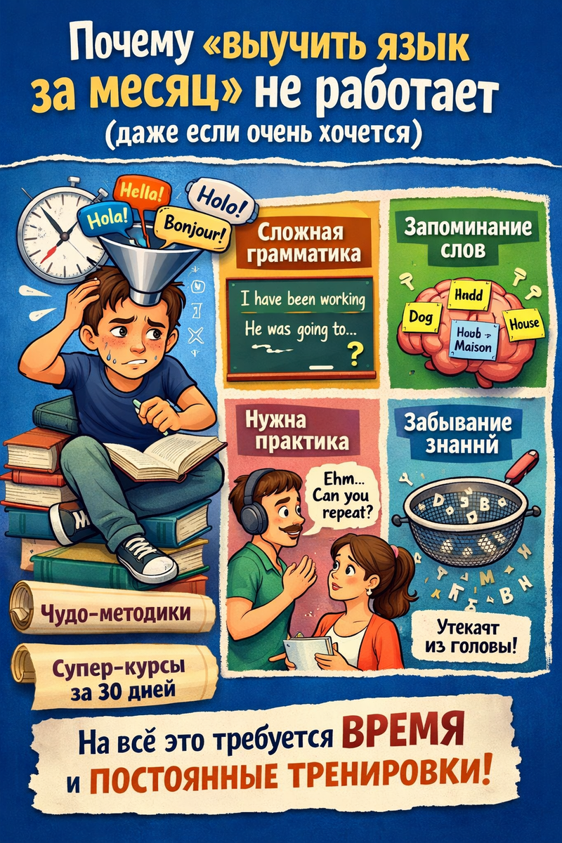 Почему «выучить язык за месяц» не работает (даже если очень хочется)