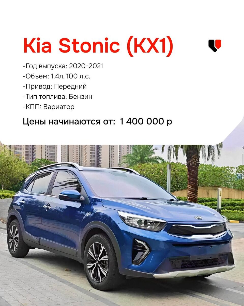 😎 Kia Stonic (KX1) -Год выпуска: 2020-2021 -Объем: 1.4л, 100 л.с. -Привод: Передний -Тип топлива: Бензин -Коробка: Вариатор Цена начинаются от: 1 400 000р. Honda XR-V -Год выпуска: 2020-2024 -Объем: 1.5л, 131 л.с. -Привод: Передний -Тип топлива: Бензин -Коробка: Вариатор Цена начинаются от: 1 600 000р. Honda Vezel -Год выпуска: 2020-2025 -Объем: 1.5л, 124 л.с. -Привод: Передний -Тип топлива: Бензин -Коробка: Вариатор Цена начинаются от: 1 600 000р. Kia Seltos (KX3) -Год выпуска: 2020-2025 -Объем: 1.5л, 115 л.с. -Привод: Передний -Тип топлива: Бензин -Коробка: Вариатор Цена начинаются от: 1 700 000р. Mazda CX-30 -Год выпуска: 2020-2024 -Объем: 2.0л, 158 л.с. -Привод: Передний -Тип топлива: Бензин -Коробка: Автомат Цена начинаются от: 1 950 000р. Mazda CX-5 -Год выпуска: 2020-2025 -Объем: 2.0л, 155 л.с. -Привод: Передний -Тип топлива: Бензин -Коробка: Автомат Цена начинаются от: 2 000 000р. Nissan Qashqai -Год выпуска: 2021-2025 -Объем: 2.0л, 151 л.с. -Привод: Передний -Тип