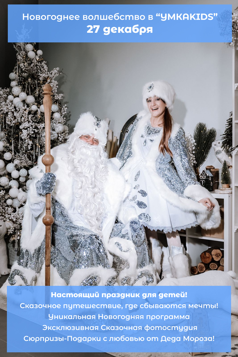 ❄️ Новогоднее волшебство в «УМКАKIDS» ❄️ Приглашаем в сказочное путешествие, где сбываются мечты! 💫 Подарите детям незабываемый праздник и веру в чудеса. В нашей программе: ✨ Уникальное новогоднее приключение 📸 Эксклюзивная сказочная фотостудия 🎁 Сюрпризы и подарки от Деда Мороза! 📅 27 декабря — Спешите, мест почти не осталось! ⏰ 10:00 — Мест нет 🚫 ⏰ 10:45 — Осталось всего 1 место! 🔥 ⏰ 11:40 — Последние 2 места! 🔥 🎟 ТОЛЬКО СЕГОДНЯ И ЗАВТРА — АКЦИЯ! Успейте забронировать билет по специальной цене: 💰 Вместо 2000 руб. — всего 1500 руб.! 📩 Для бронирования пишите прямо сейчас в ЛС! Подписывайтесь на наши каналы, чтобы быть всегда в курсе наших интересных новостей, наших праздников и наших акций. https://dzen.ru/umkakids