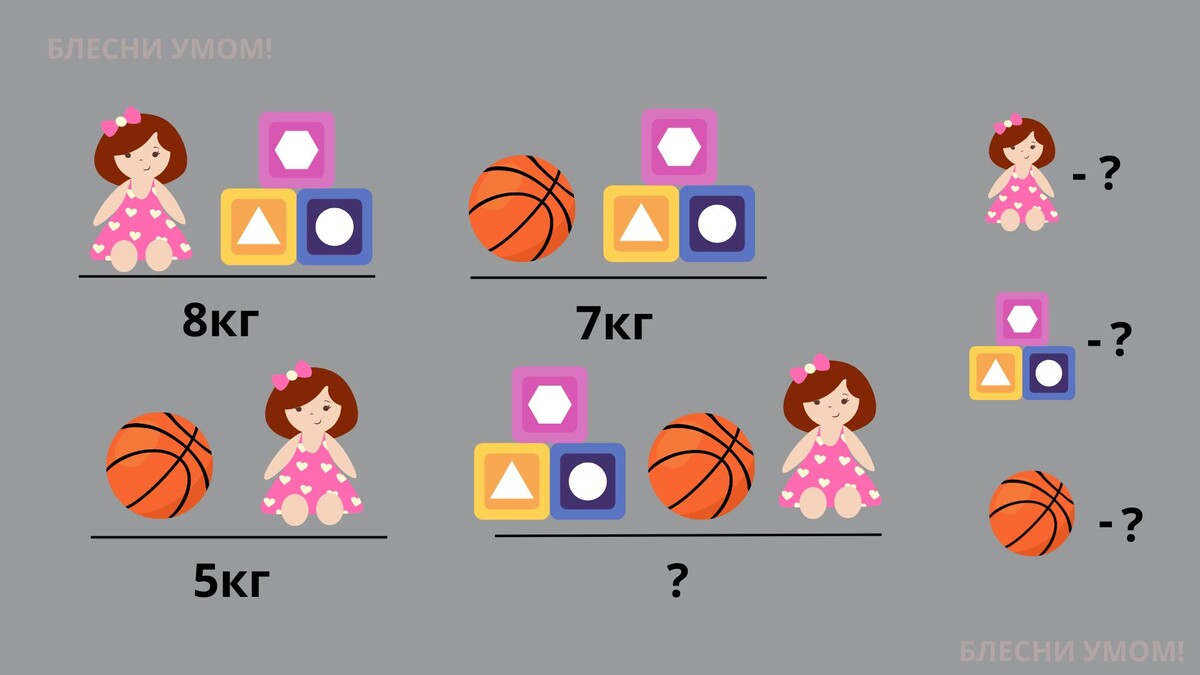 Сколько весит каждый? Логическая игра с предметами и питомцами