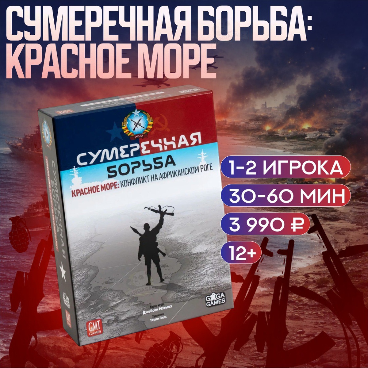 Ваш час настал! 🐼 Сумеречная Борьба: Красное Море – это самостоятельная карточная стратегия для двоих, основанная на легендарной Twilight Struggle. Битва сверхдержав за контроль над Африканским Рогом в разгар Холодной войны. Вся глубина оригинала, но всего за 45-60 минут! 🌐 1974 год. Император Эфиопии Хайле Селассие I свергнут. К власти приходит марксистская революционная хунта. Региональный баланс сил нарушен. СССР и США вступают в схватку за влияние в стратегически важном регионе – Африканском Роге и Красном море. Вы – лидер сверхдержавы. США или СССР. Каждое ваше решение изменит баланс сил. Один неверный шаг – и мир окажется на грани ядерной войны. 🐼 Принять бремя сумеречной борьбы. ⭐️ 1-2 игрока | от 30 мин | 12+ 📍 Приехать: Суворова 52а ☎️ Позвонить: +7 (908) 177-87-17 🎁 Заказать игру