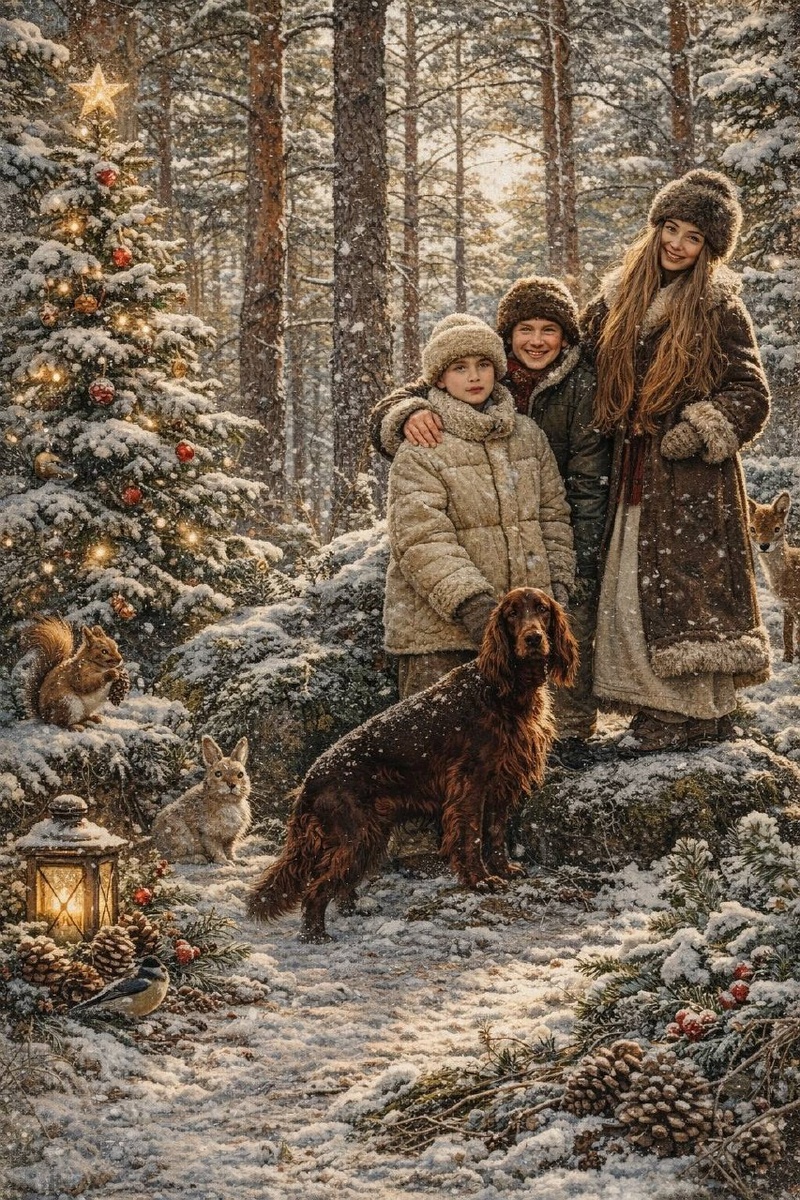 ? Мне он очень понравился, по этому предлагаю попробовать и вам 😍 Заходим в Chat GPT или Gemini (у кого что работает), загружаем семейное фото и вводим промт: «Сделай из этой фотографии, старую открытку в стиле Новый год, добавь елочку, зверюшек, еловые шишки Стиль советские сказки в реалистичном стиле. Формат 9:16 Одежду измени на зимнюю старую одежду, добавь меховые советские шапки У парня шапка из ондатры. У девушки из норки. Ребенок пусть будут в советской шубе и шапке. Лица остаются максимально похожими как на исходном фото» Кидайте в комментарии что у вас получилось 🫶
