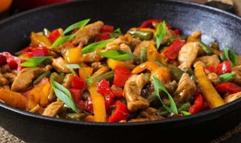 Говядину нарезаем на небольшие кусочки и обжариваем на сковороде около 10 минут, в процессе добавив соль, перец и специи.