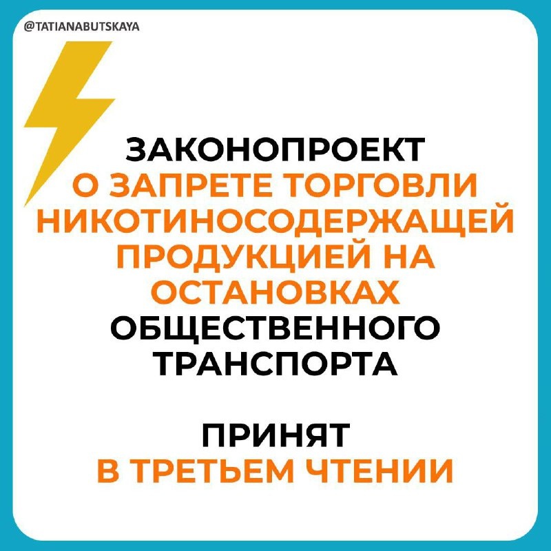 ! Документом предлагается с 1 марта 2026 года ввести полный запрет торговля табачными изделиями на остановках. Если точнее, то законопроект запрещает продажу табачных изделий, продукции с содержанием никотина, кальянов и устройств для их использования в пределах остановок городского общественного транспорта и пригородных маршрутов. 👉 Принятие закона позволит сократить территориальную доступность этих товаров и будет способствовать снижению их потребления среди россиян.