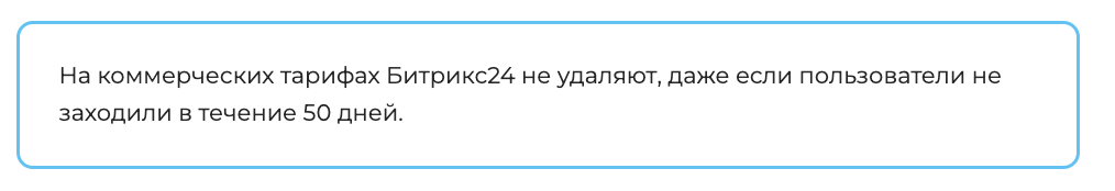 - По истечении этих 50 дней 1С-Битрикс оставляет за собой право полностью удалить ваш портал со всеми данными, задачами, CRM, файлами и настройками. Восстановить их будет невозможно.