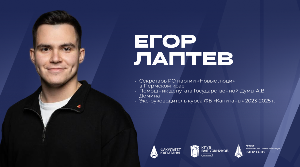 Интервью с Егором Лаптевым — секретарём регионального отделения партии «Новые люди» в Пермском крае, наставником, выпускником и бывшим куратором курса на факультете «КАПИТАНЫ».