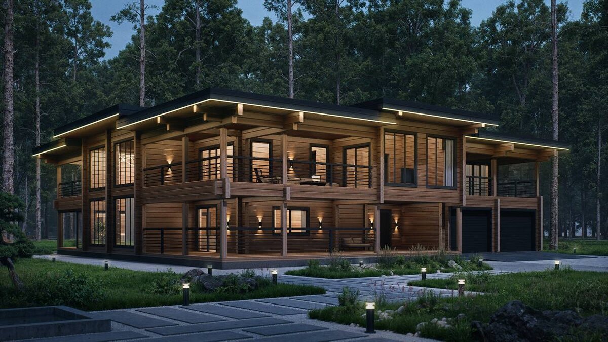 решений: Проект «Майнц» — двухэтажный дом из клееного бруса общей площадью 832 м². Проект разработан с акцентом на масштаб, функциональность и комфорт для большой семьи, где каждое пространство имеет чётко продуманное назначение. Первый этаж (300 м² тёплого контура) формирует основную жилую зону дома. Здесь расположены три спальни, гостиная со вторым светом и отдельная зона кухни-столовой, объединённая с гостиной в единое пространство. Планировка дополнена постирочной, кладовой для кухни и продуманной системой хранения, обеспечивающей удобство в повседневной жизни. На этаже предусмотрены две крытые террасы, расширяющие жилое пространство и создающие комфортные зоны отдыха. Также в проекте учтён крытый гараж — важный элемент загородного дома такого масштаба. Второй этаж (246 м² тёплого контура) отведён под приватную часть дома. Здесь размещены три спальни, кабинет и три гардеробные, обеспечивающие высокий уровень комфорта и личного пространства. Этаж дополняют три балкона, усиливающие
