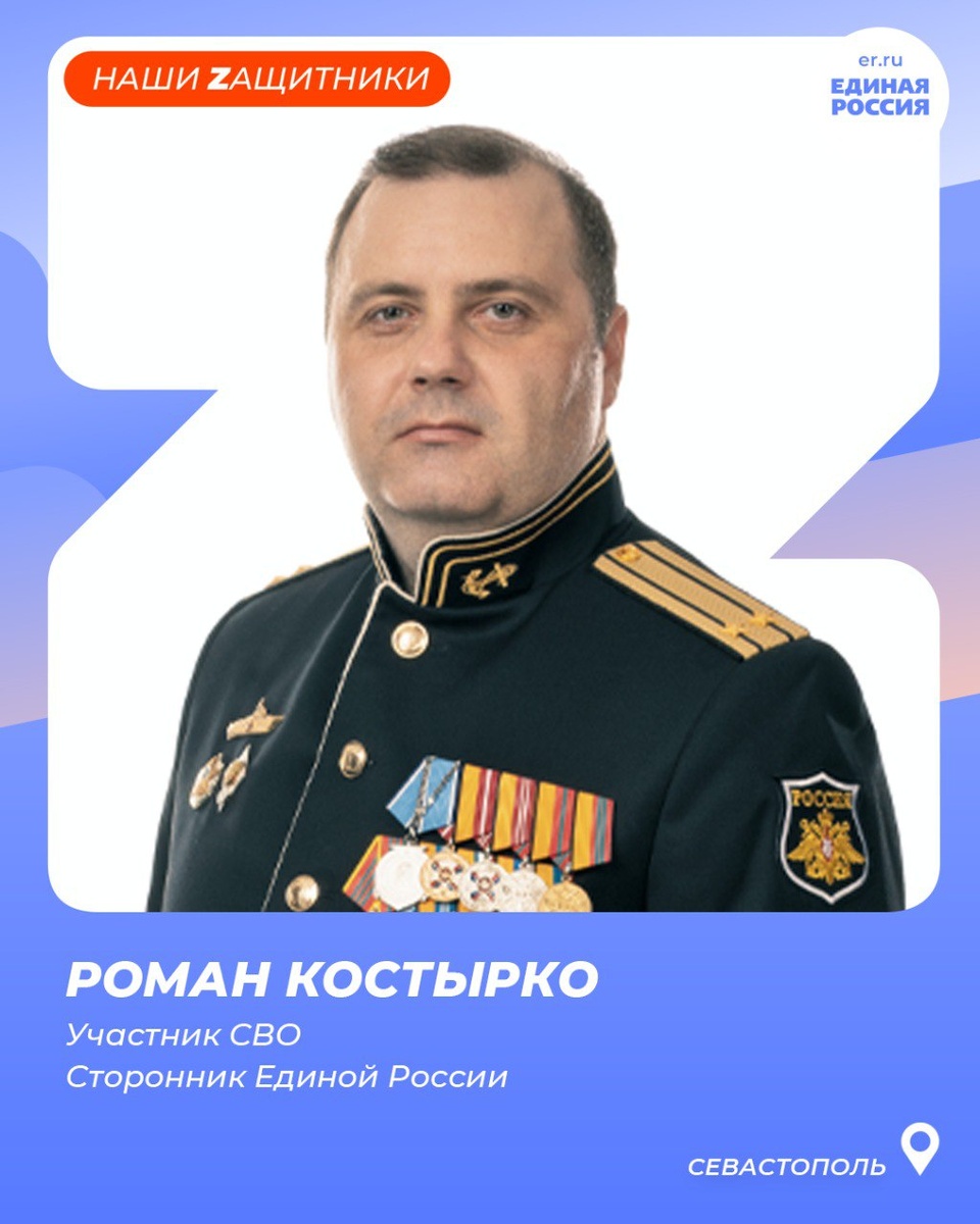 Сторонник «Единой России», участник первого потока программы «Время Героев» Роман Костырко родился в Городе-Герое Севастополе, в семье потомственных военных моряков. Учился в Нахимовском Военно-морском училище и затем в Санкт-Петербургском Военно-морском институте. За плечами у командира группы кораблей и возвращение Крыма в родную гавань и специальная военная операция. «С уроков истории начинается воспитание будущих защитников. Поэтому при каждой возможности я иду в школу, чтобы поговорить с ребятами, рассказать им простыми словами о защите исторических рубежей, о подвиге и о том, что называется Родиной. Убежден, поколение ветеранов СВО должно быть в такой же тесной связке с молодежью, как в свое время с нами были ветераны Великой Отечественной войны. Их уроки воспитали нас. Наш долг – воспитать новое поколение защитников и настоящих патриотов», – сказал Роман Костырко.