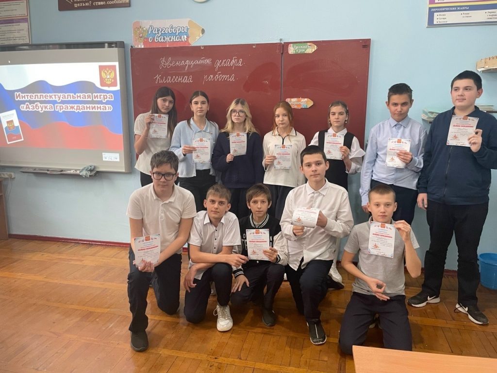 12 декабря, мы отмечаем одну из важнейших дат в истории нашей страны – День Конституции Российской Федерации! Этот праздник – отличный повод вспомнить о фундаментальных основах нашего государства, о правах и обязанностях каждого гражданина. В честь этого знаменательного дня, художественный руководитель Ряженского сельского дома культуры, Злата Котлярова, организовала для учащихся седьмого класса МБОУ Ряженской средней общеобразовательной школы имени Героя Советского Союза В.В. Есауленко увлекательную интеллектуальную игру «Азбука гражданина». Главная цель мероприятия – углубить гражданско-правовое образование школьников и воспитать в них уважение к закону и праву. Ведущая игры мастерски провела ребят через историю возникновения Дня Конституции Российской Федерации, напомнила огосударственной символике и её значении. Торжественное исполнение гимна страны стало прекрасным началом интеллектуального состязания, объединив всех участников в едином порыве гордости за Родину. Игра состояла из