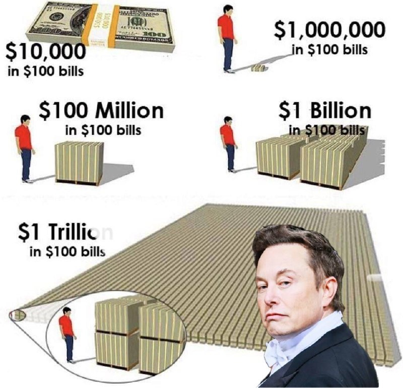 Это происходит накануне IPO SpaceX. Таким образом, Илон приблизился к тому, чтобы стать первым в мире триллионером. Наверняка вам ужасно хочется посмотреть, как выглядит триллион наличными. Вот, смотрите 👆 «Щукин и всё»