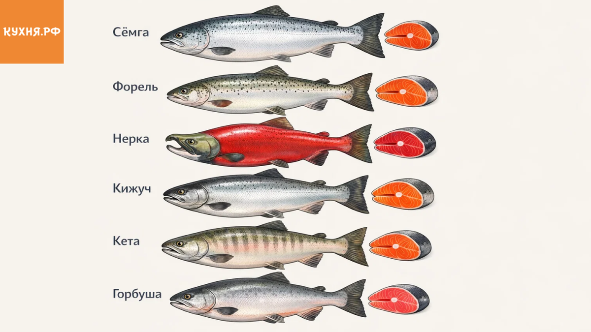 Новый год без красной рыбы – как елка без огней. Она почти всегда есть на столе: в нарезке, салатах, рулетах, тарталетках, канапе. И каждый декабрь у витрины с рыбой повторяется один и тот же диалог с самим собой: что взять на этот раз? Семгу, форель, нерку, кижуча? Все красивые, розово-красные, будто из одной семьи. Спойлер: так и есть. Все они – лососевые. Но характеры у них разные, и именно от этого зависит, насколько удачным получится праздничный стол.