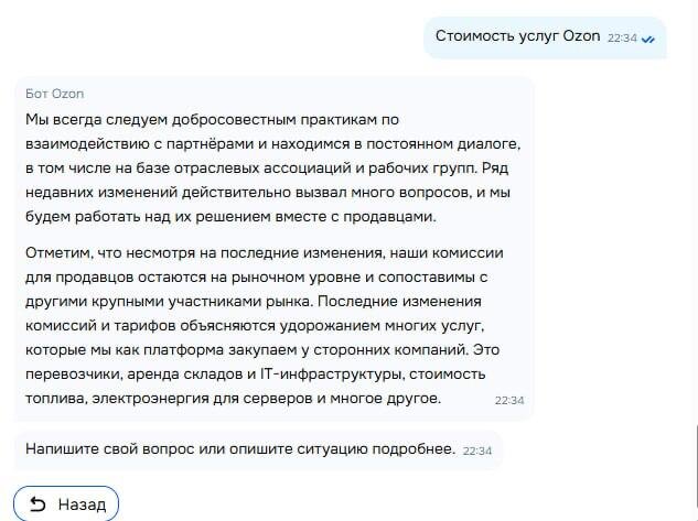 Вот так Ozon научил своего бота объяснять конские комиссии для российских продавцов