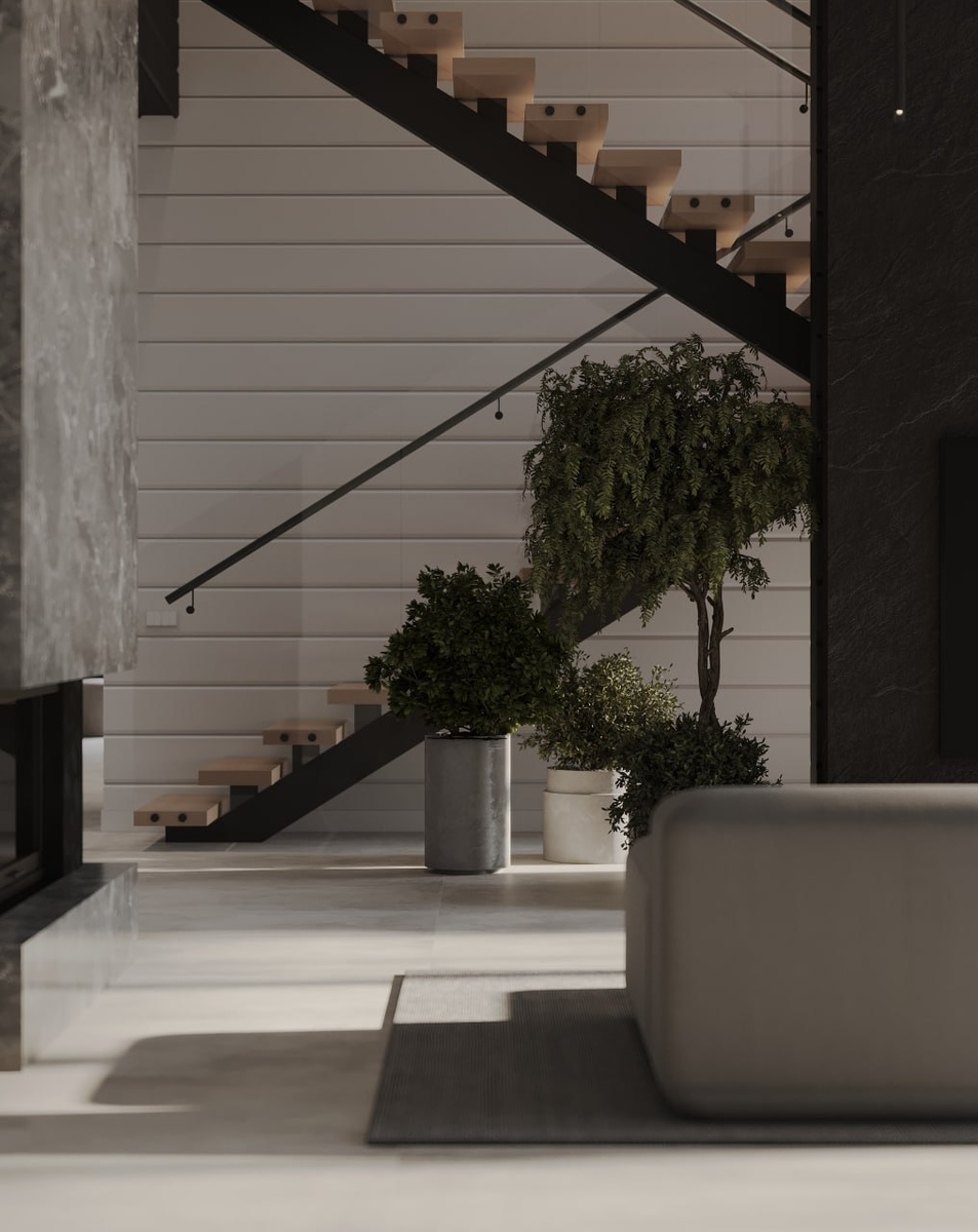 2. Серый “бетонный” интерьер во всём