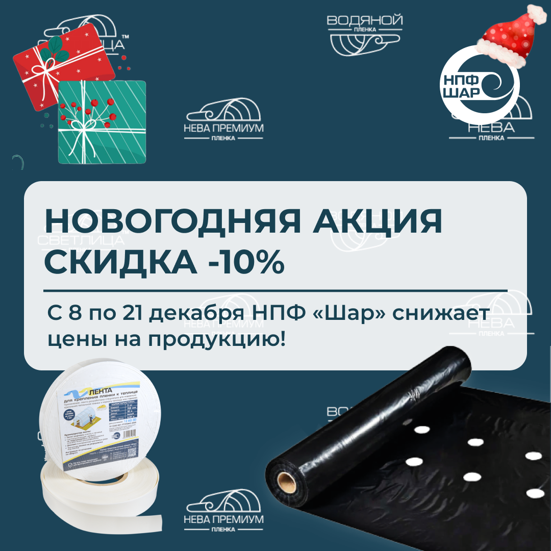 Напоминаем, что с 8 по 21 декабря НПФ «Шар» снижает цены на всю продукцию на 10%! Условия Новогодней акции: 🔹 Акция распространяется на оптовый и розничный прайс-лист; 🔹 Действие акции не распространяется на однолетнюю полиэтиленовую, техническую и силосную пленки; 🔹 Скидка 10% не суммируется с другими скидками. 📌 Наш сайт: https://clck.ru/3QstQn
