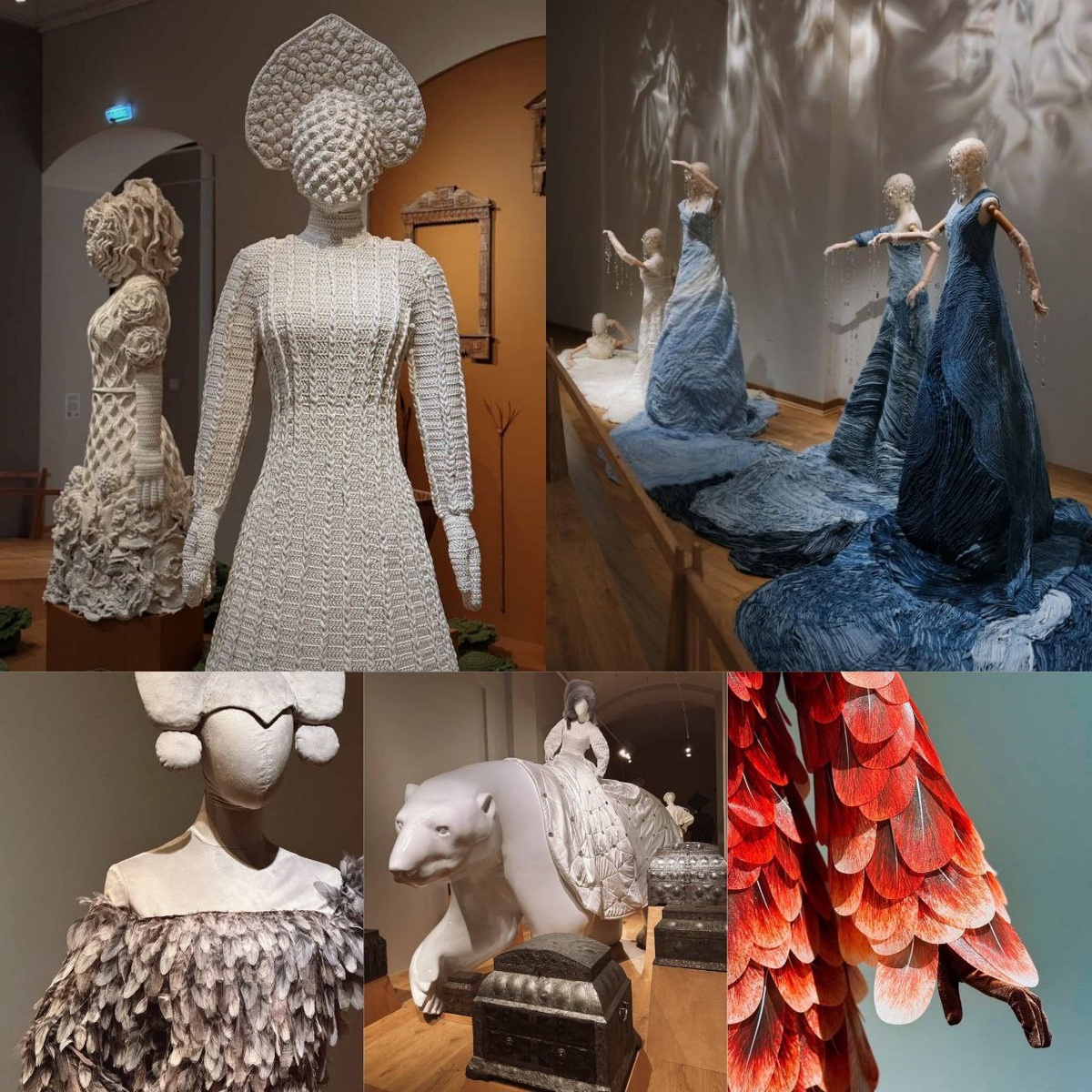 , вдохновлённой древнерусской культурой. Каждый элемент инсталляции связан с символами, легендами и образами, берущими начало в традициях русской истории и фольклора. Это не просто показ модных предметов, а комплексная художественная композиция, отражающая личное восприятие автора и объединяющая исторические, культурные и мифологические слои за пределами привычных рамок моды и визуального искусства. Подробности можно узнать по ссылке (не реклама) #выставка #культура #музей #традиции #искусство #ахмадуллина #сныалены #художник #фольклор @ЛитМузБес