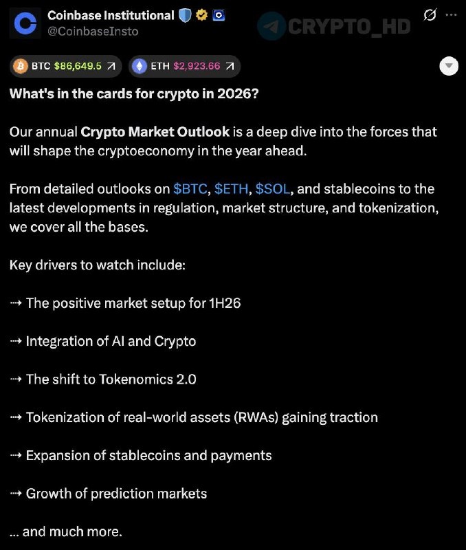 📊 В Coinbase опубликовали прогноз по крипторынку на 2026 год