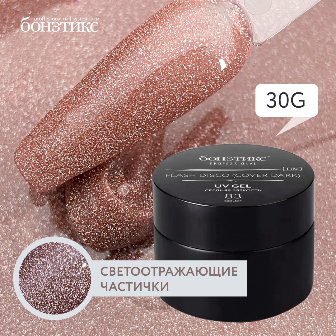 Новинка!☄️ №83 Гель Бонэтикс™ Flash Disco Сover Dark) - жёсткий UV/LED-гель средней вязкости со светоотражающими частичками, тёмный