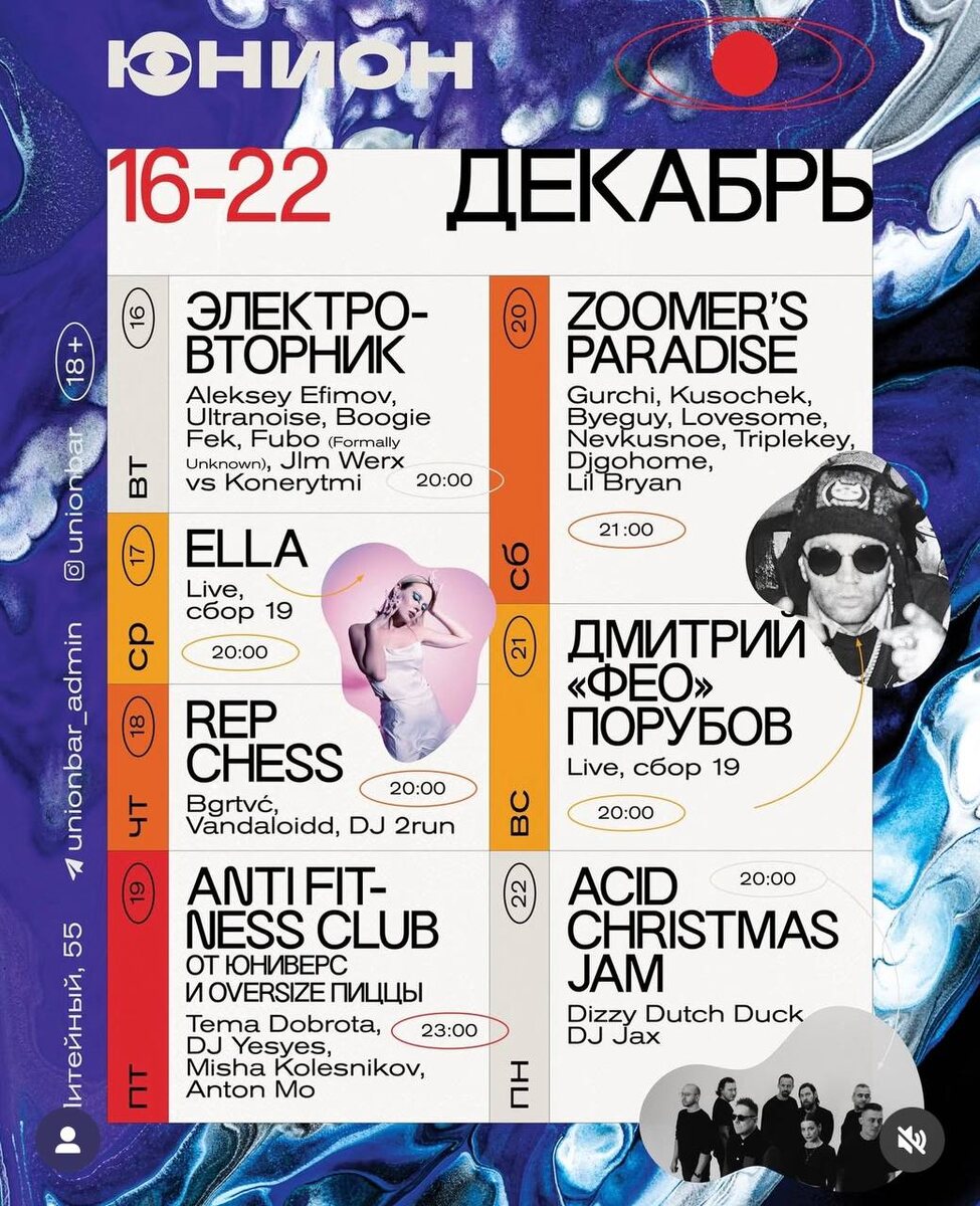 22.12/ ПОНЕДЕЛЬНИК/ ACID ChRISTMAS JAM Ежегодный@coolacidjam от Dizzy Dutch Duck, посвященный новогоднему сочельнику и Рождеству. Любимые известные и неизвестные песни. За пультом с 20:00 — DJ Jax.