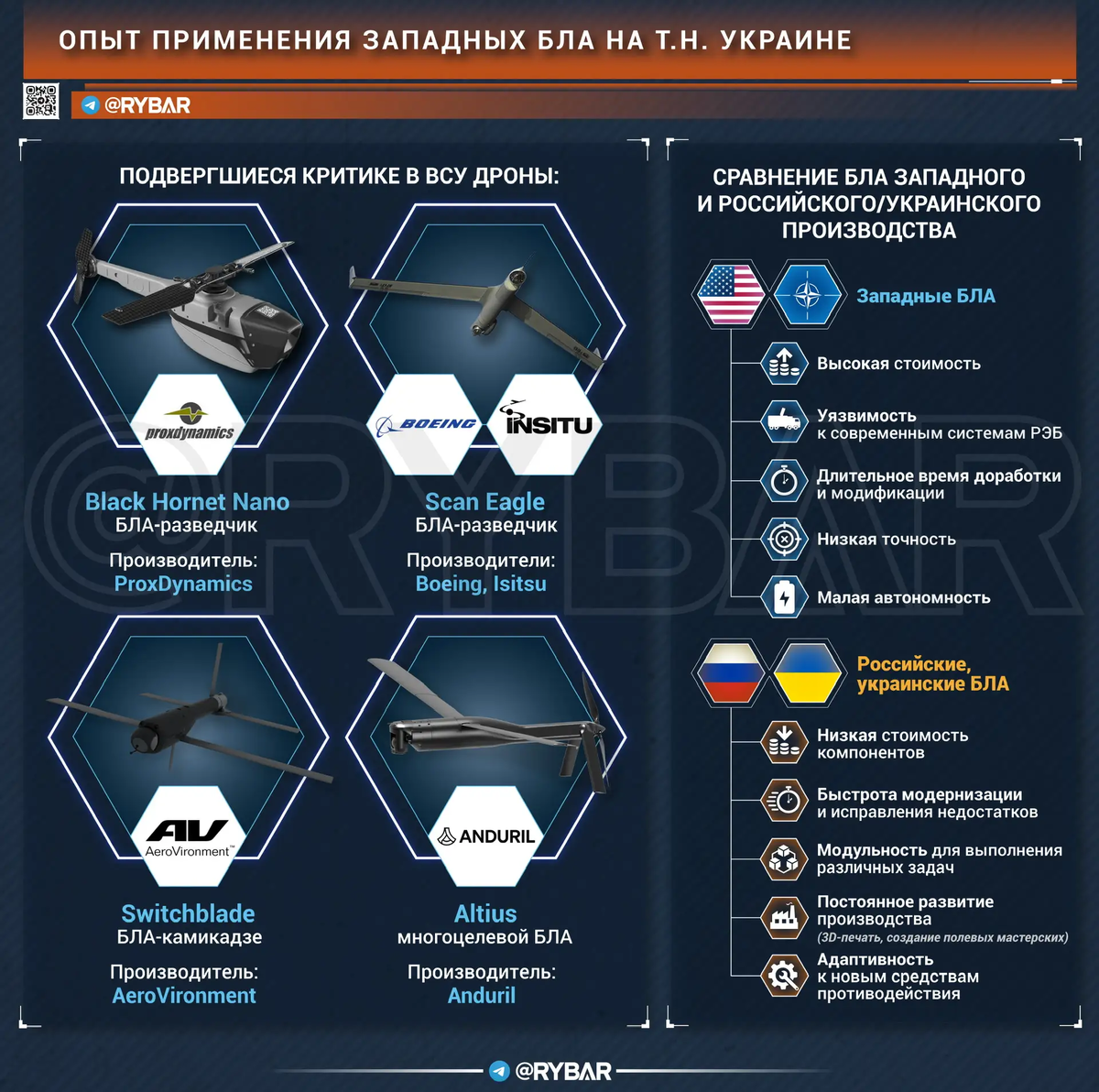 Не взлетели. 🔸С самого начала СВО украинские формирования переходили на продукцию западного ВПК. Некоторые его образцы сыграли заметную роль в ходе боевых действий и прочно закрепились на вооружении ВСУ. 🔸Однако в области именно дроностроения страны НАТО оказались в роли догоняющих. От некоторых моделей БЛА противник и вовсе полностью отказался, перейдя на изделия от «национального производителя» на основе китайских компонентов и 3D печати. ❗Какие американские изделия не прошли проверку временем и почему, мы разобрали на нашем канале в MAX.