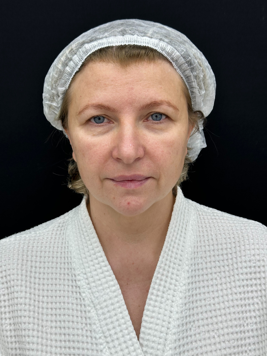 В этой статье я покажу реальный пример, когда изолированная подтяжка лба дала более выраженный, естественный и долговременный результат. Перед нами пациентка, у которой в целом всё неплохо. Нет грубых возрастных деформаций, нет выраженного птоза тканей.