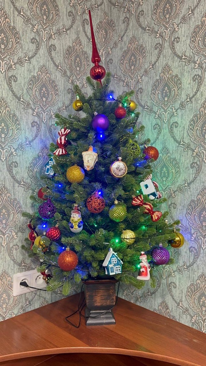 Добрый вечер, дорогие друзья! 💚 Пока была свободная минутка нарядил нашу маленькую ёлочку.🎄❤На улице холодища, ветер пронизывает до
