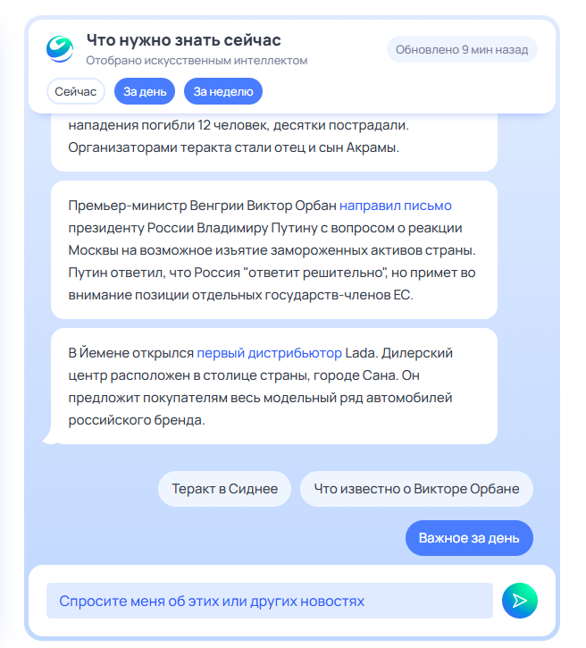 16 декабря портал «Рамблер» представил инновационную функцию — диалоговое окно с ИИ-помощником, который в режиме реального времени отвечает на вопросы пользователей о текущих новостях. Это первый в российской медиасреде сервис, построенный на отечественной LLM-технологии и интегрированный непосредственно в новостную ленту. Помощник формирует ответы на основе проверенных источников: материалов федеральных СМИ, включая «РИА Новости», «ТАСС», «Интерфакс», а также собственных репортажей и аналитики «Рамблера». Ключевая особенность — каждый ответ сопровождается прямыми ссылками на первоисточники, что повышает прозрачность и снижает риски распространения фейков, манипулятивных формулировок и эмоциональных триггеров. Пользователи могут задавать как общие вопросы — например, «Какие последние новости в России?», — так и точечные, требующие контекста: «Что сказал президент на программе „Итоги года“?», «Как изменились цены на бензин в декабре?» или «Какие меры поддержки малого бизнеса анонсировал