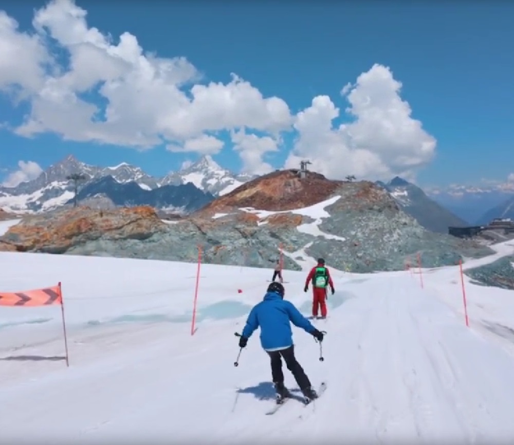 К снегам долго поднимались на фуникулере. Чимин закрыл лицо маской, но даже по глазам было видно, что он слегка трусит: