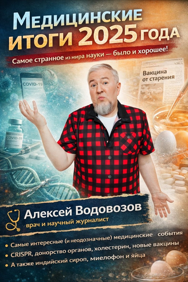 Традиционная лекция с подведением итогов тоже будет юбилейной, десятой. Всё как обычно: треш, угар и новости. Скандалы, интриги, ретракции. Миелофон индийской полиции и научно обоснованный алгоритм варки яиц. В общем, учёные в 2025-м году прям постарались.