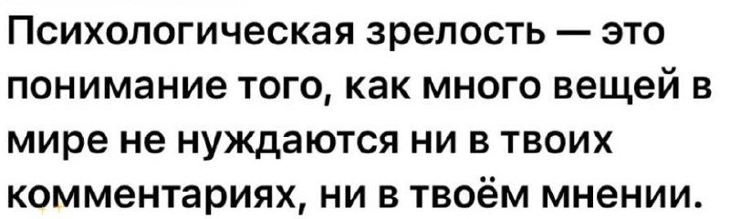 Наблюдения последних месяцев и выводы: Не давать комментариев и советов, если их не спрашивали. Всегда дать выговориться собеседнику и только потом сказать/написать мнение, если его спросили. Если ты в помогающей профессии - НЕ ДАВАТЬ БЕСПЛАТНЫХ СОВЕТОВ! /разве что в своём канале, сообществе, клубе и т.д./ Речь о личных рекомендациях, особенно ценно, запомнить данную информацию и применять тем, кто любит раздавать свои советы всем и каждому.