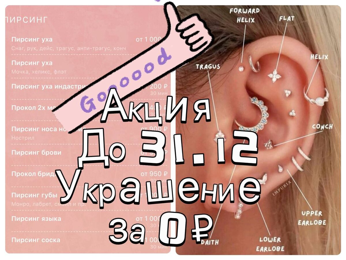 🌸 Акция на пирсинг, украшение из титана за 0₽ до 31 декабря ✅❤️🔥