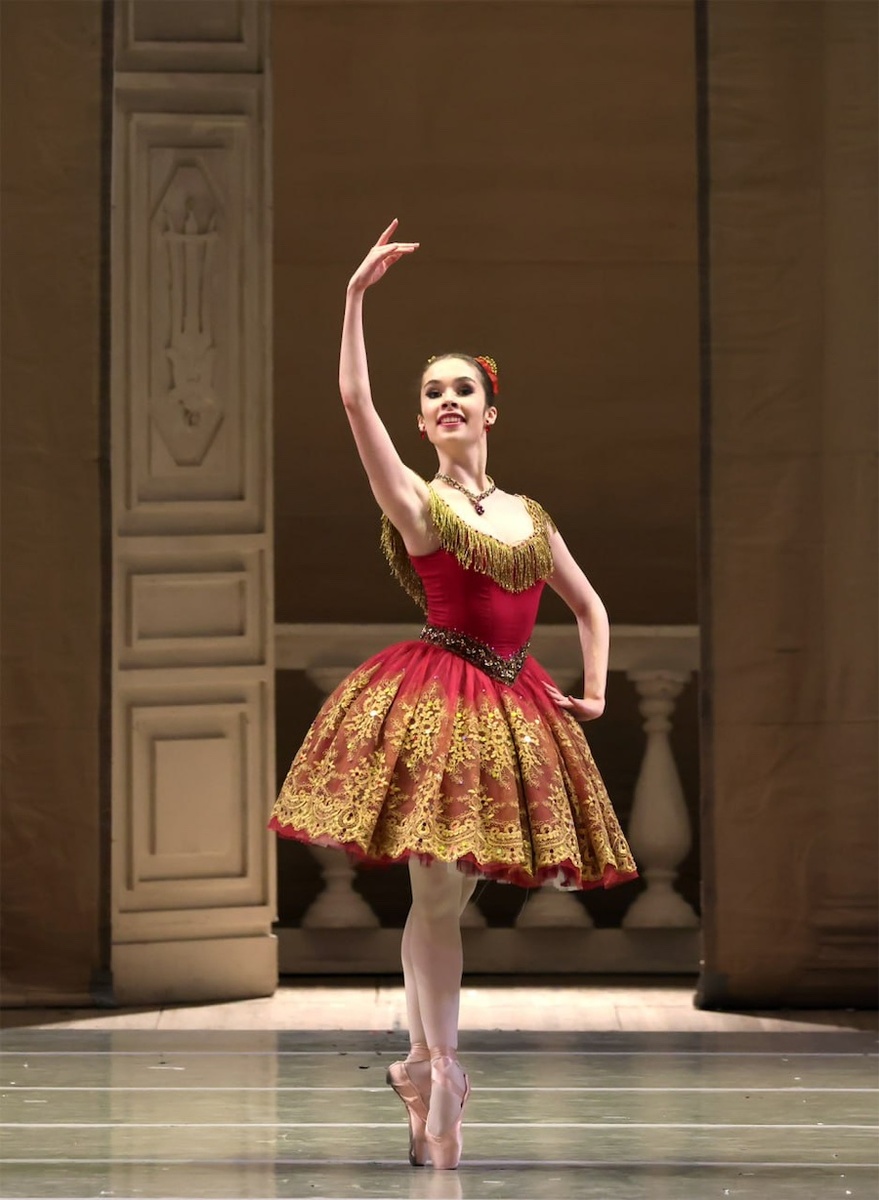 Петербурженка Юлия Котлярова перед поступлением в 1/5 класс Академии шесть лет занималась в Школе искусств. Во время обучения в Академии на последнем курсе СПО она получала именную стипендию Фонда Галины Улановой. Общеобразовательные дисциплины ей также давались хорошо. Например, в 2018/2019 учебном году Юлия стала призером районного этапа региональной олимпиады школьников по математике. Академию она окончила по классу Н.М. Цискаридзе, получив диплом с отличием. В выпускных спектаклях 2025 года Котлярова танцевала в четверке маленьких лебедей во 2-ой картине балета «Лебединое озеро», а также в Pas de trois в сюите из балета «Пахита» (на фото). После выпуска из Академии Юлия приняла приглашение в балетную труппу НОВАТ и уехала в Новосибирск.