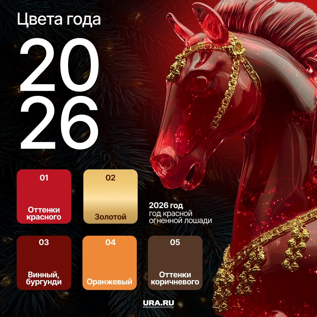 Новый год по восточному календарю — год Красной Огненной Лошади. Поэтому, смело используем оттенки красного и винный. Они притянут благополучие, успех и огромную удачу. Еще можно обратить внимание на сияющий золотой и оранжевый. Цвета привлекут процветание, творческую энергию и новые идеи. Лошадь — животное земли. Поэтому коричневый самый беспроигрышный вариант для тех, кто желает успехов в карьере и финансах. Не рекомендуется встречать год в черном, белом, голубом и синем — цвета замедлят вашу активность и энергию в 2026 году. Подписаться | Прислать новость | Дать «буст» | Мы в MAX