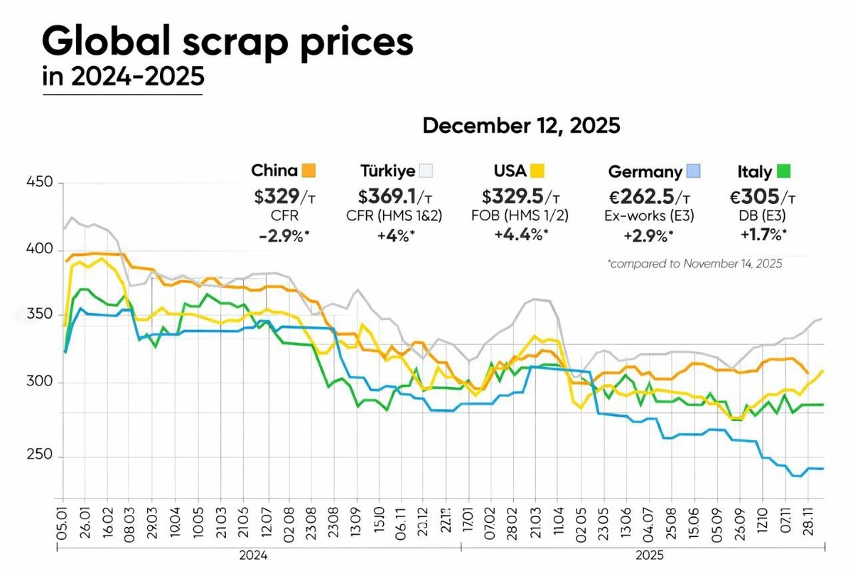К концу года глобальный рынок лома поддерживается сезонным сокращением предложения и осторожной политикой закупок со стороны металлургов, несмотря на вялый спрос на сталь.