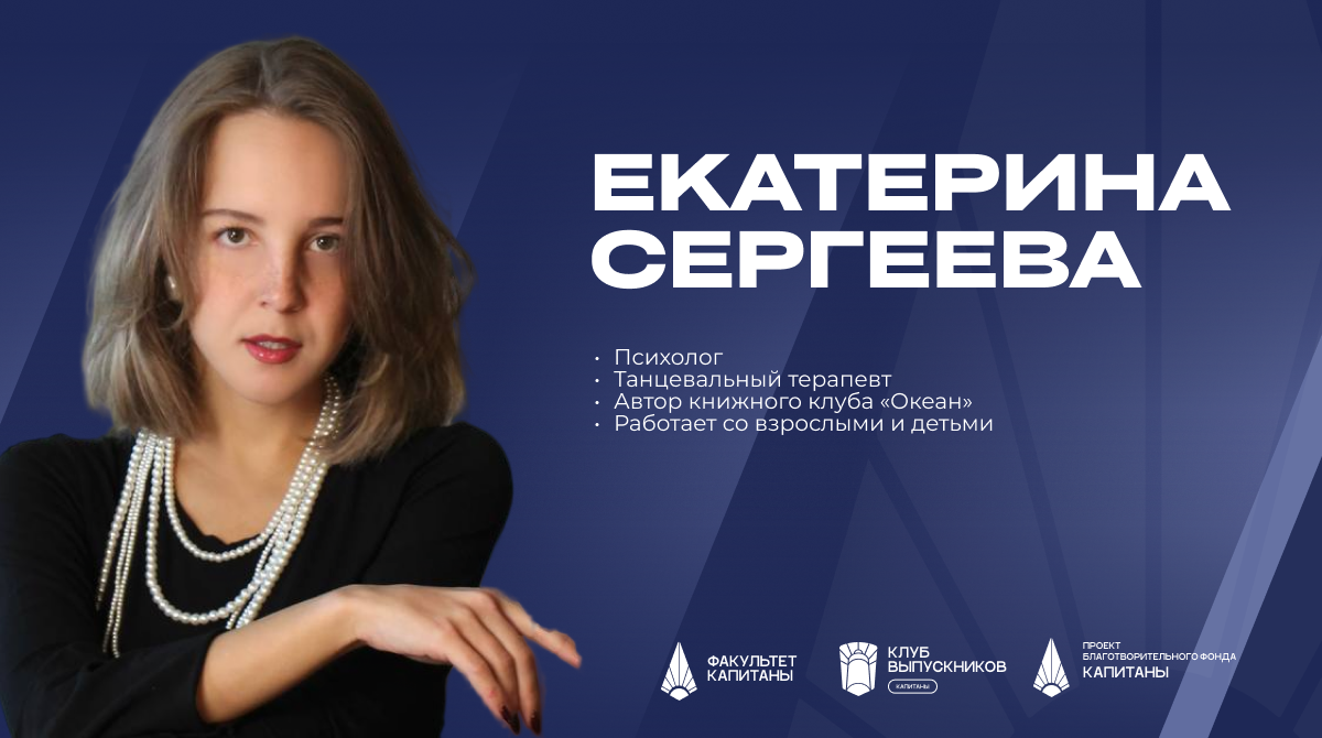 Присоединяйтесь к группам Факультета «КАПИТАНЫ» , Клуба выпускников «КАПИТАНЫ» и Благотворительного фонда «КАПИТАНЫ» - там вы найдёте не только Екатерину, но и других тех, кто не ждёт указаний, а сам прокладывает путь.