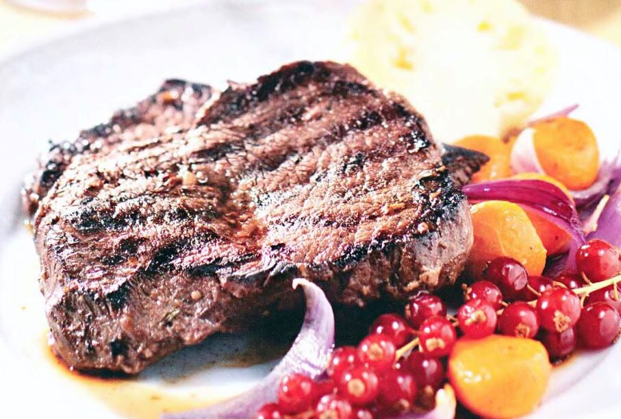 Полстакана коньяка и литр красного сухого вина превращают обычное мясо в изысканное блюдо. Аромат, который раскрывается при обжаривании, и насыщенный вкус при поедании полностью оправдывают использование дорогих ингредиентов. Начинать готовить стоит за 3–4 часа до подачи, чтобы мясо успело пропитаться маринадом и стать мягким и сочным. 5. Положите в маринад мясо, добавьте веточки тимьяна. Аккуратно перемешайте так, чтобы каждый кусок был покрыт жидкостью и специями. 6. Накройте миску крышкой или пищевой пленкой и поставьте в холодильник на 3–4 часа. Чем дольше мясо маринуется, тем глубже будет вкус, но даже через пару часов аромат уже заметен. Время от времени можно аккуратно перевернуть куски, чтобы маринад проникал равномерно. Если у вас особенно качественная говядина, например вырезка, можно ограничиться только коньяком и черным перцем. Сбрызните мясо, оставьте на час, а затем сразу обжарьте на углях или на тяжелой сковороде-гриль без масла – мясо сохранит природную нежность и арома