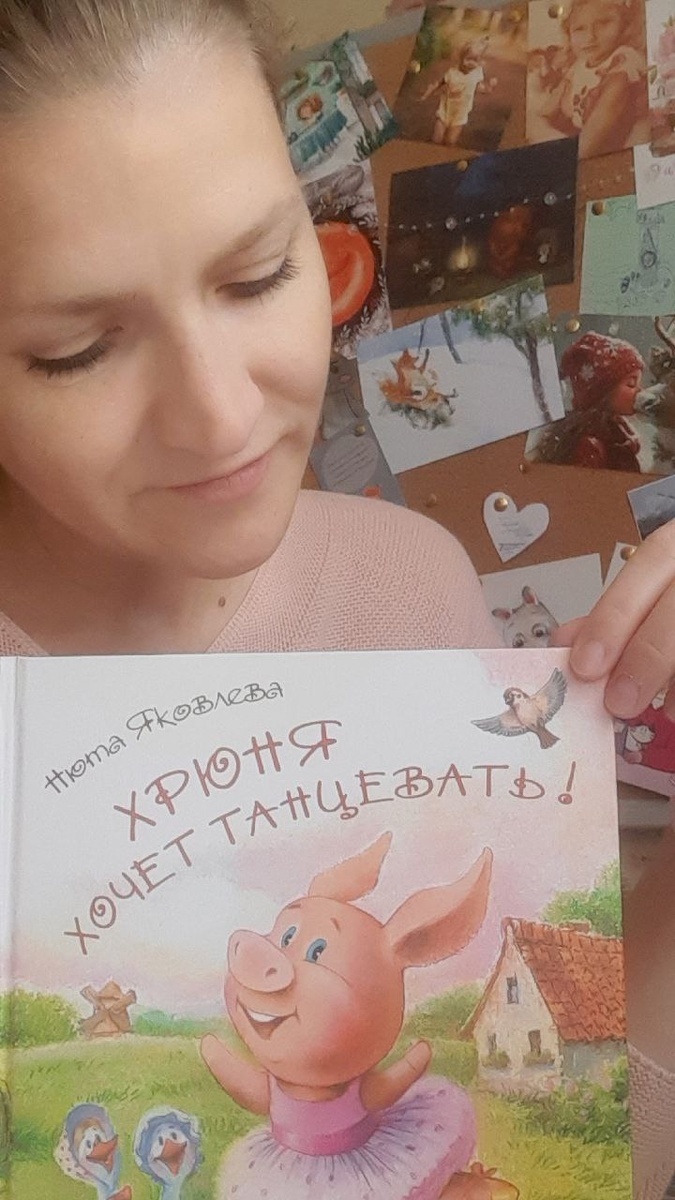 Героиня, у которой я училась Наш земляничный автор Нюта Яковлева рассказывает историю появления книги "Хрюня хочет танцевать": "Когда я только-только начинала писать, мне захотелось рассказать историю о вере в себя, о поддержке и о том, что даже нереальные мечты могут исполниться. Или мне самой тогда нужно было в это верить! Так ко мне постучалась милая свинка Хрюня и заявила, что мечтает о балете🩰 Скажем честно, у свинок в балете мало шансов. Но я свою героиню переубеждать не стала, ведь я и сама в это время делала первые шаги в писательстве. Свинка маленькими шажками направилась к цели. Скажу по секрету, я тогда взяла с Хрюни пример, и тоже начала действовать. По чуть–чуть. Писать и рассылать рукописи в издательства и на конкурсы, появился первый договор, потом первая книга... А рукопись про свинку, хоть и попала в декабре 2021г. в финал конкурса "Короткое детское произведение" от издательства "Настя и Никита", домик нашла не сразу. Тут помог эфир нашего земляничного клуба с издател