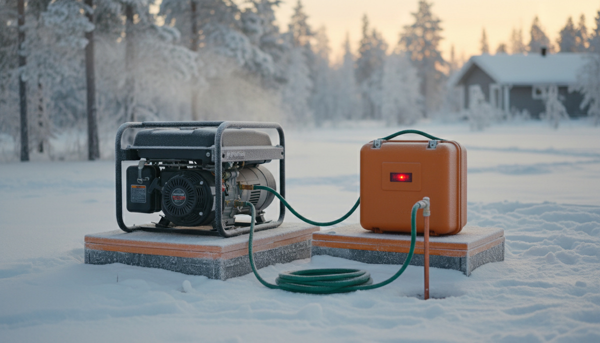 Для стационарных генераторов используют «cold kits»: подогрев картера, термостатический подогрев батареи. Для мелких насосов — тёплая коробка с 25–75 Вт нагревателем и термостатом. Аккумуляторы держи в тёплом боксе: целевая температура для работы и зарядки +5…+15°C.