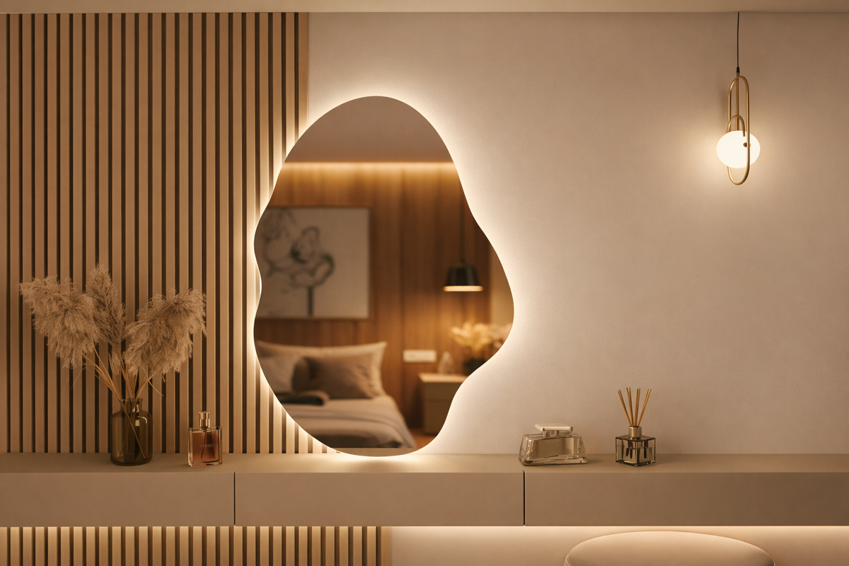 Стена почти пустая — и на ней это фигурное зеркало. Подсветка мягко очерчивает форму, не светит в глаза, не «заливает» пространство. Просто видно отражение и сам контур — аккуратно, спокойно. Такие зеркала сразу выдают разницу между «повесили потому что нужно» и «подбирали под пространство». Форма не строгая, не геометрическая — из-за этого стена перестаёт быть фоном. Даже без полок, постеров и лишних деталей она выглядит собранной. Подсветка здесь ощущается полезной, а не декоративной. Перед выходом видно лицо и одежду без резких теней. В ванной она работает иначе — отражение чёткое, зеркало не теряется на фоне плитки. В спальне или гардеробной вечером часто обходятся вообще без верхнего света — этого достаточно. Что важно — рядом не хочется ничего добавлять. Картины, бра, декор просто не нужны: зеркало само держит внимание. Сенсор включается без лишних движений, а свет подчёркивает форму даже на пустой стене. 👉 Ссылку оставила здесь —