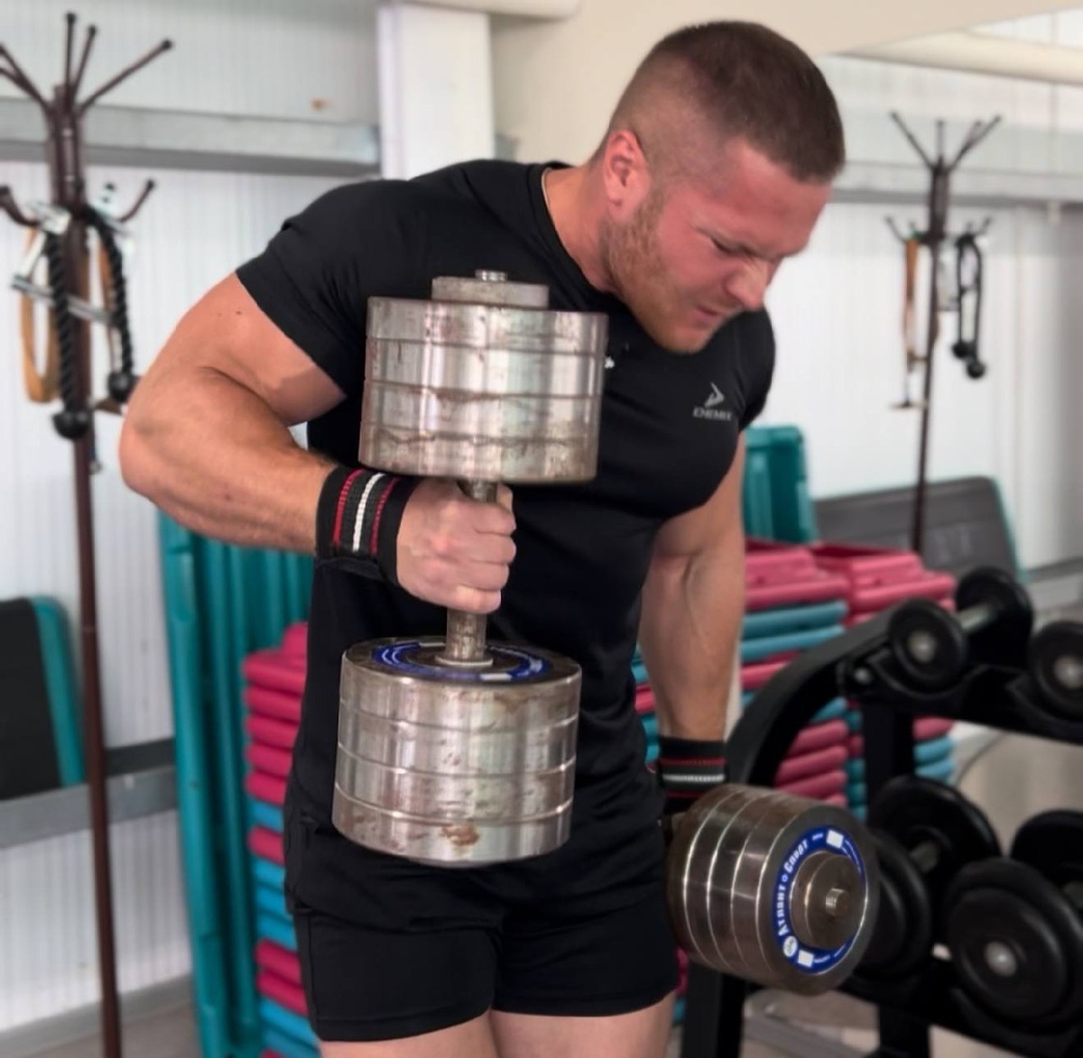 💪🏼 Очень много «работы на работе», некогда даже пост написать, вот вырвался в обед ✍️ Сегодня выпущу видео, как молотки увеличивают жим лёжа👀 Знали ли вы об этом? ☝️ Кстати, у меня на фото гантели по 50 кг, без лямок и прочего. Делал их на 6 или 8, при весе 80, в натураху 😸 С каким весом вы делаете молотки? 🔨