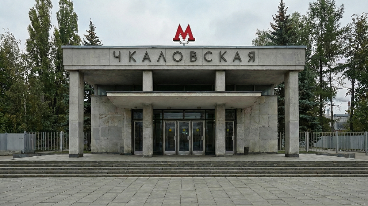 В первую очередь передаю привет моим дорогим 170-ми подписчикам. Вы читаете статью из проекта «Пермское метро, если бы его построили в 80-е и продолжили строить в 90-е». Если вы не понимаете, что происходит, то рекомендую прочитать эту статью. Предупреждение: я не строитель и не архитектор. Я просто любитель метро. Все созданные мною изображения являются выдумкой и созданы для того, чтобы вы улыбнулись и помечтали (ну или взгрустнули). «Чкаловская» — третья станция второй линии виртуального Пермского метро после «Политехнической» и «Комсомольской площади». Вестибюль с плоской кровлей, массивными квадратными колоннами и каменной облицовкой расположен в заводском районе на пересечении улиц Чкалова и Куйбышева. В пешей доступности проходная завода, техникум ПИТ, строительный факультет ПНИПУ, а также памятник «МИГ на взлете». «Чкаловская» — первая односводчатая станция Пермского метро. Свод станции полностью зашит металлическими панелями, образующими непрерывную дугу, почти как корпус пром